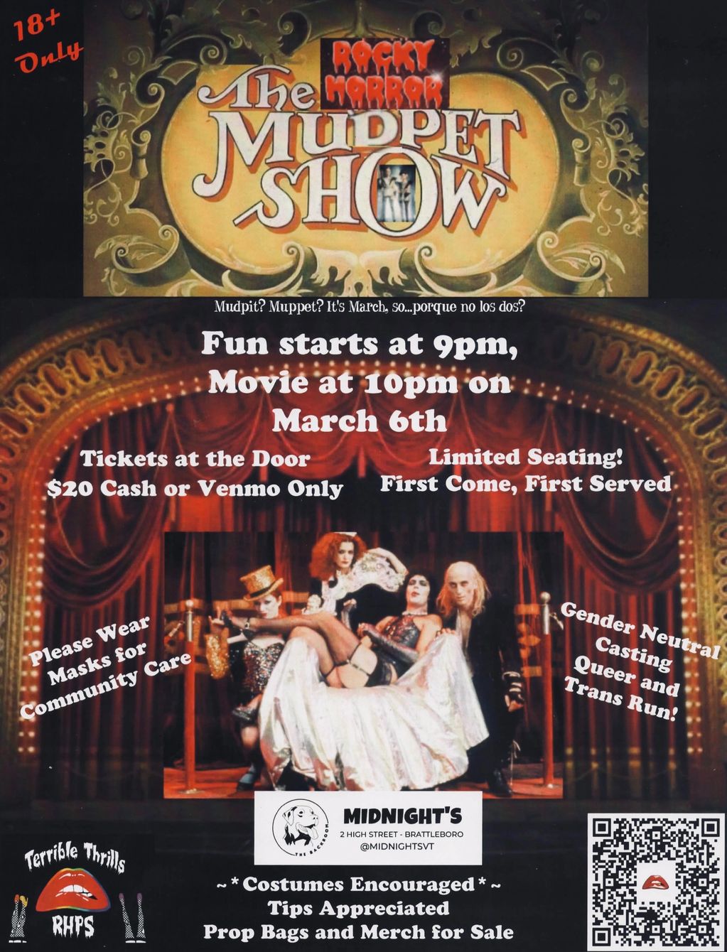 Southern Vermonts favorite Rocky Horror Picture Show Shadow Cast brings in the splendor of the Muppets for this mashup extravaganza.